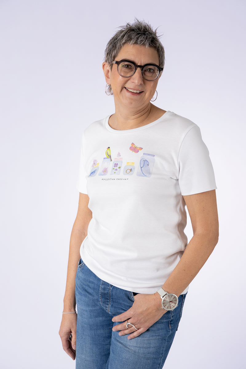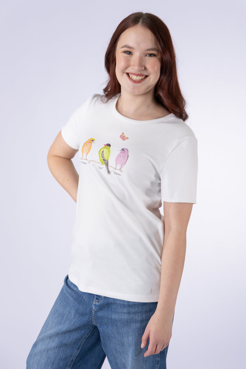 Rundhals-Shirt mit Frontprint "Vögel"