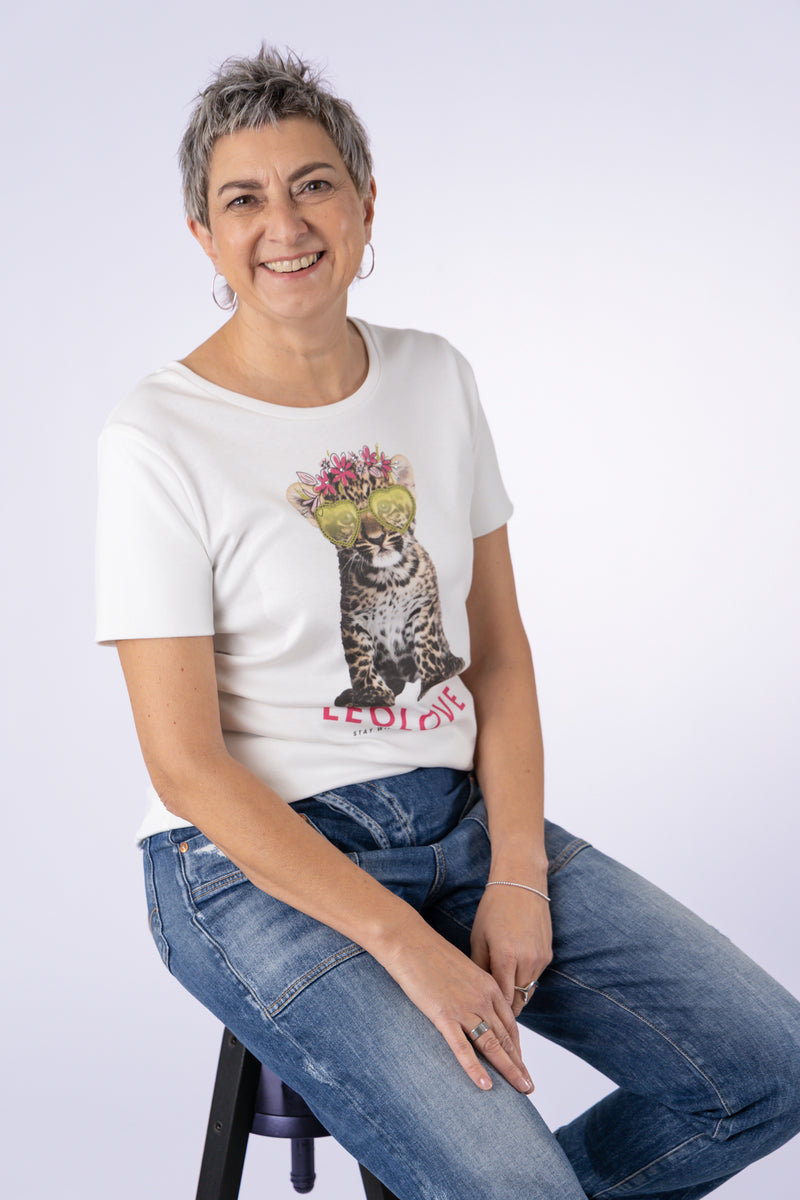 Rundhals-Shirt mit Frontprint "LeoLove"