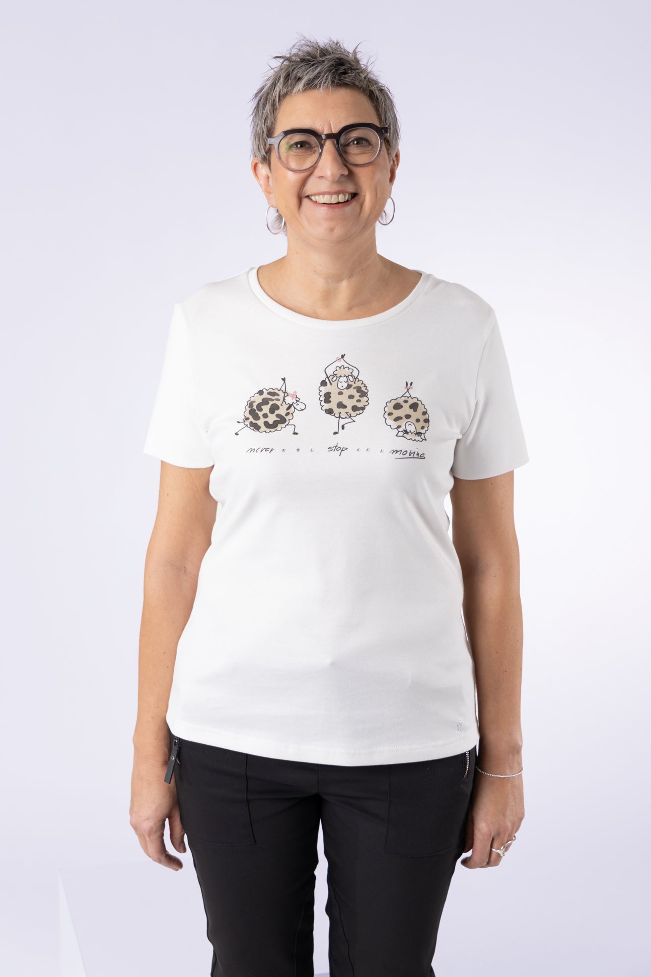 Rundhals-Shirt mit Frontprint "Schafe"