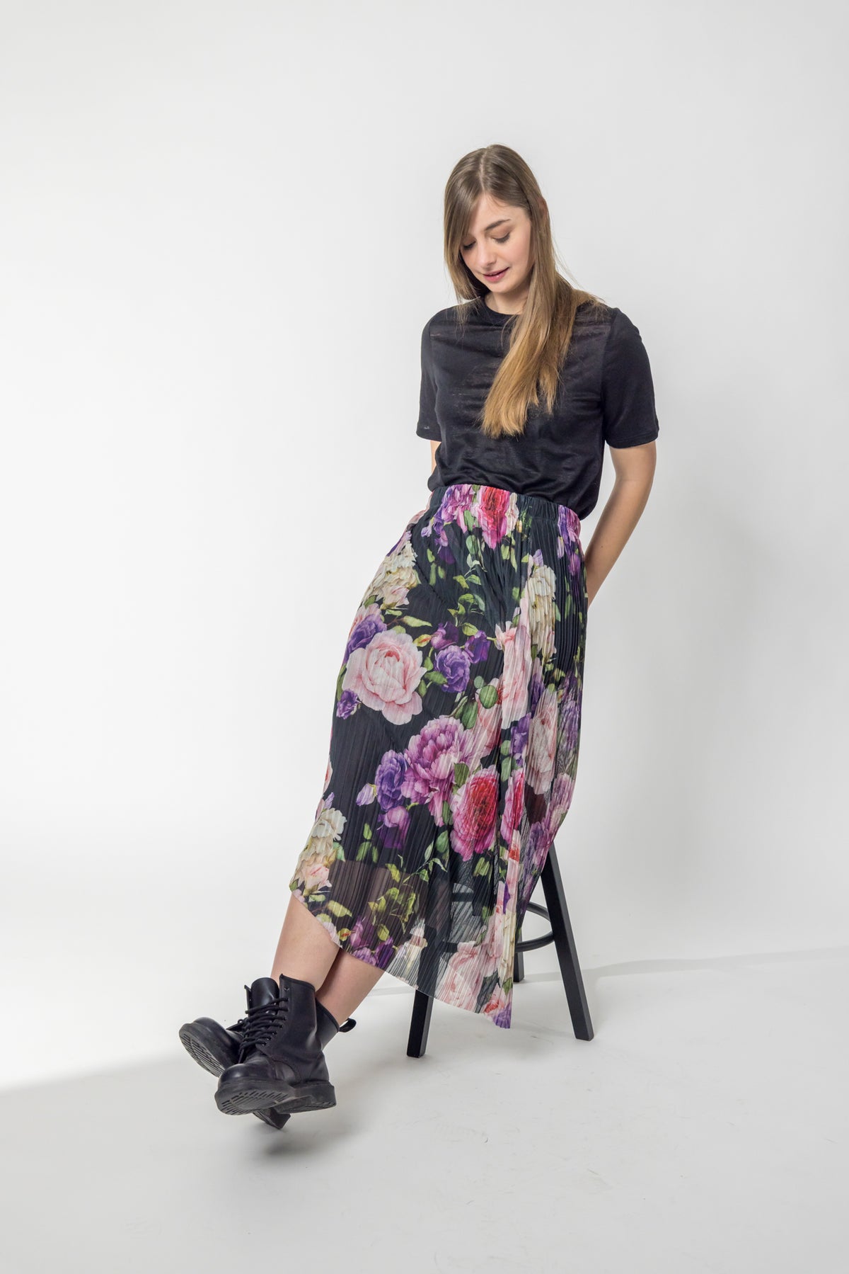 Plissee Rock mit Blumen-Print