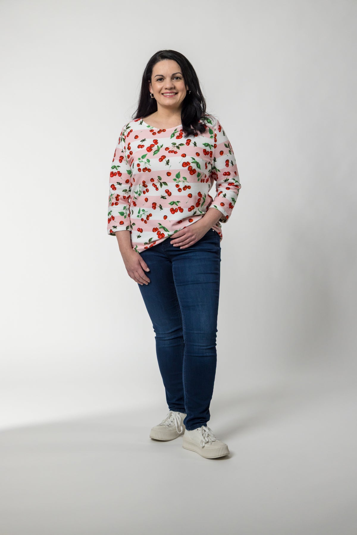 Dieses Shirt bietet die ideale Balance zwischen Komfort und Passform. Es sitzt weder zu eng noch zu locker und ist somit ein schöner Alltagsbegleiter. Die farbintensiven Allover-Prints werden in Österrreich gestrickt und bedruckt. Dank der pflegeleichten Ottoman Rippen Qualität bleibt es auch nach vielen Wäschen in Form.