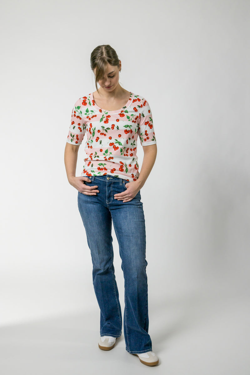 Rundhals-Shirt mit Kirsch-Ringel-Print