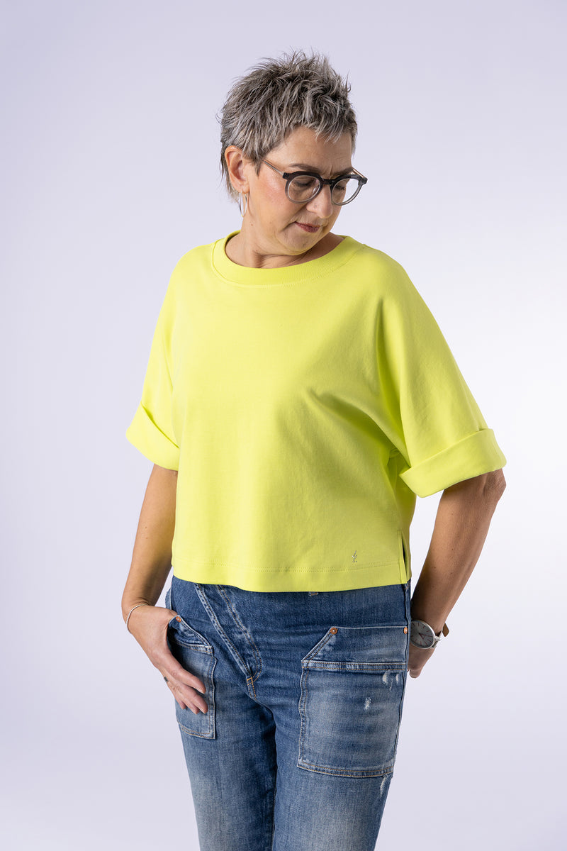 "Heavy" Rundhals-Shirt mit überschnittenem Arm