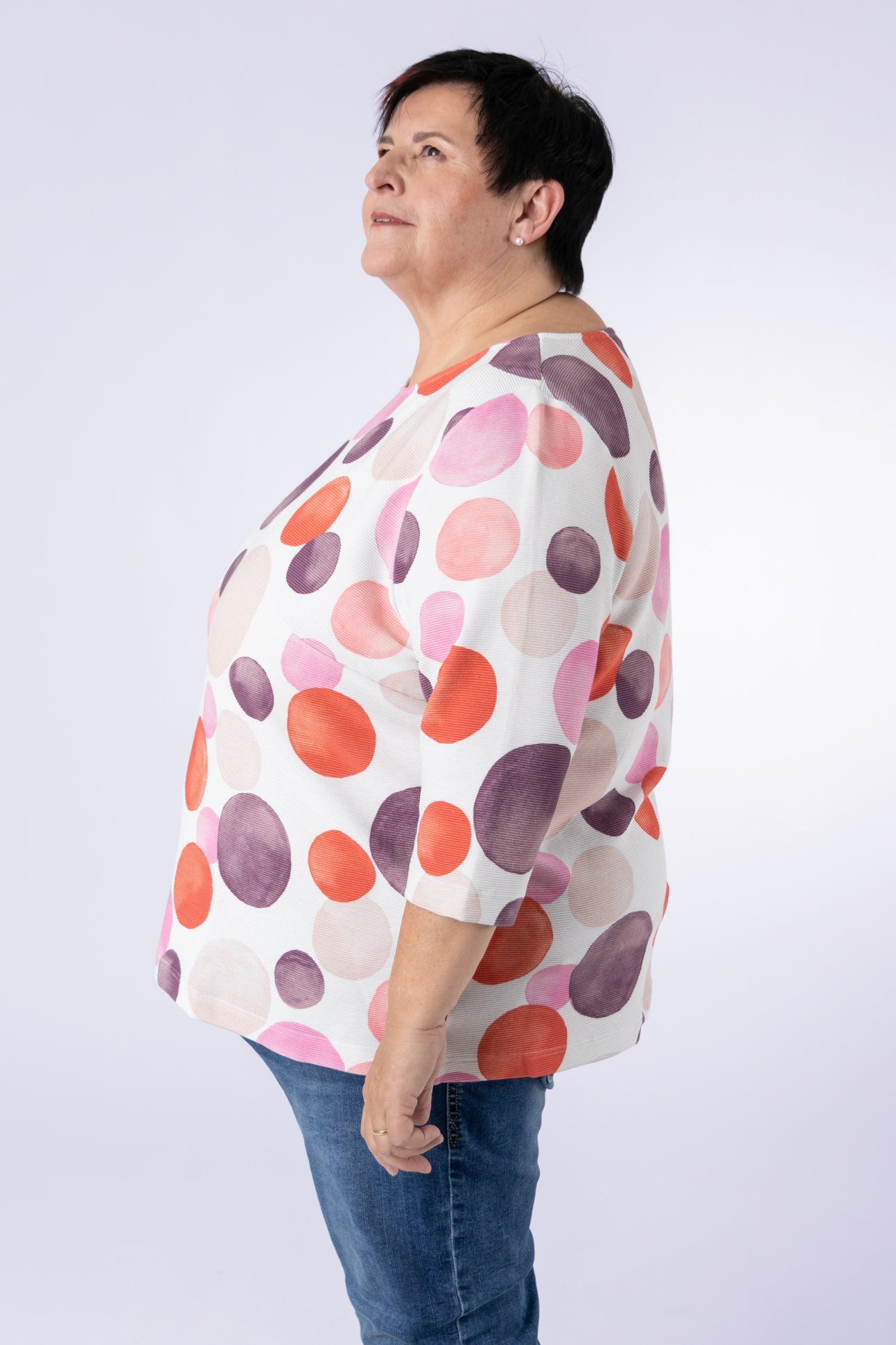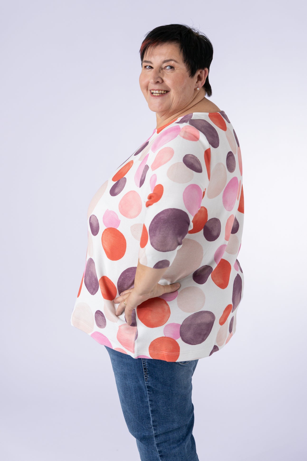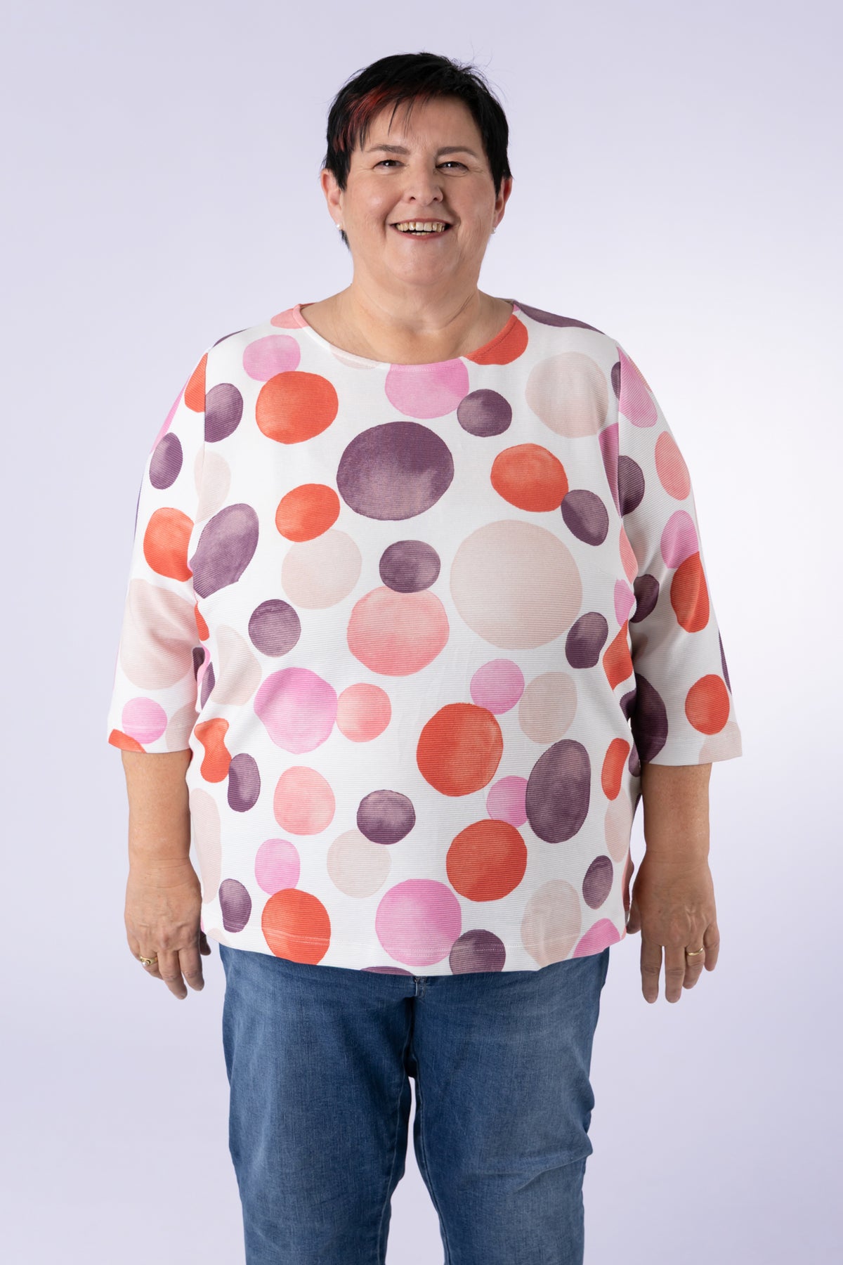 Dieses Shirt bietet die ideale Balance zwischen Komfort und Passform. Es sitzt weder zu eng noch zu locker und ist somit ein schöner Alltagsbegleiter. Die farbintensiven Allover-Prints werden in Österrreich gestrickt und bedruckt. Dank der pflegeleichten Ottoman Rippen Qualität bleibt es auch nach vielen Wäschen in Form.