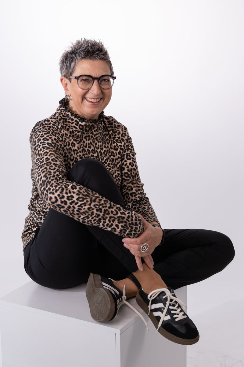 Stehbund-Shirt mit Leo-Print
