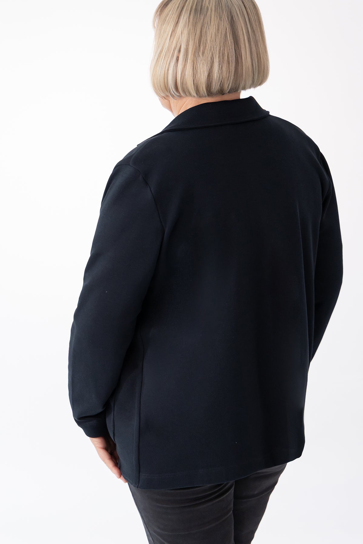 Dieser Blazer aus 98 % Baumwolle und 2 % Polyamid überzeugt mit einem festen Griff und zugleich angenehmer Weichheit. Die hochwertige Verarbeitung fühlt sich komfortabel auf der Haut an und sorgt für eine moderne, figurbetonte Passform. Bezogene Knöpfe und praktische Taschen runden das elegante Design stilvoll ab.